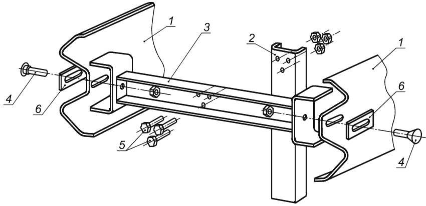 1 - балка; 2 - стойка; 3 - консоль-распорка; 4 - болт М1645.5.8; 5 - болт М1630.5.8; 6 - шайба 80404 мм
